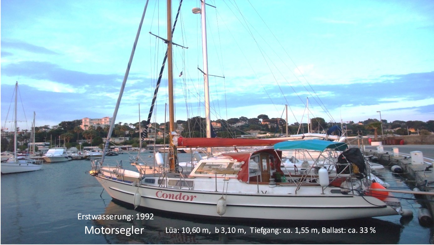 Das Boot wurde als Einzelanfertigung, nach mehrjähriger Bauzeit, 1989 weitgehend fertig gestellt. Erstwasserung 1992, nach dem Anbau der Badeplattform und dem Einbau eines neuen 4-Zylinder-Vetus-Dieselmotors. --------- Warum möchte der Eigner sein Boot verkaufen? Seit er die Segel-Yacht besitzt, segelt er das Boot ausschließlich mit seiner Frau oder allein, gelegentlich nimmt er 2 Gäste mit. Inzwischen ist er "In die Jahre gekommen". Nutzt das Boot nicht mehr so häufig. Will es zu einem Zeitpunkt verkaufen, bevor aus gesundheitlichen Gründen ein Verkaufs-Zwang entsteht. -------- Sie wollten schon immer einen stebigen Motorsegler besitzen? Die SY Condor wartet im Norden von Sardinien (Porto Torres) auf den neuen Eigner. Sehr gut erreichbar. Der Liegeplatz kann übernommen werden. --------- Hinweis kurz & wichtig: Die im Angebot verwendeten Daten & Fakten stammen vom Eigner / Anbieter u. sind von der AB-Immo nicht auf Richtigkeit geprüft. Irrtum & Zwischen-Nutzung vorbehalten. *** |